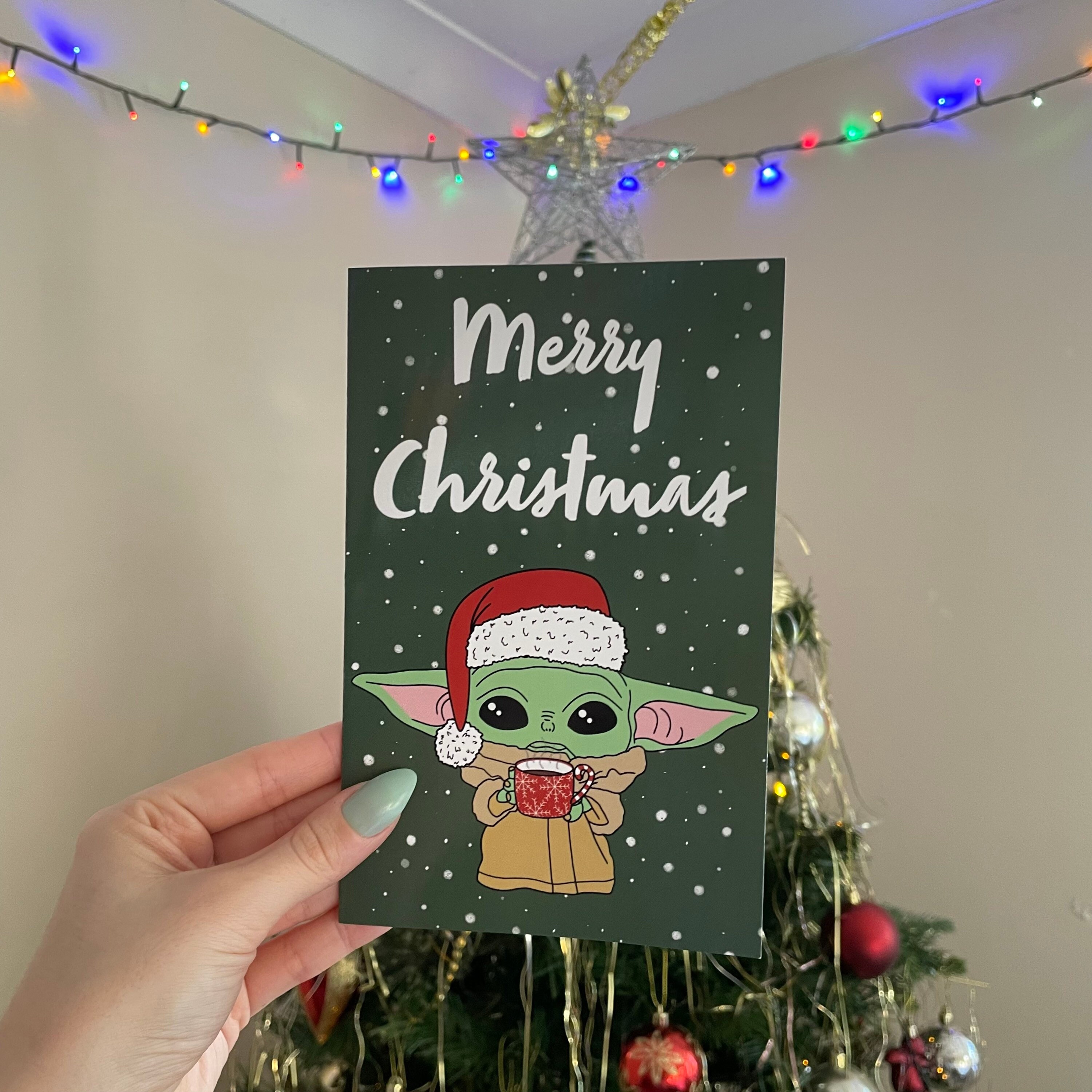 Star Wars/ The Mandalorian Christmas greetings card 18.2 x 11.7 cmEnvelope included Blank inside for you to add your own message Designed by Chloe Penn Illustration