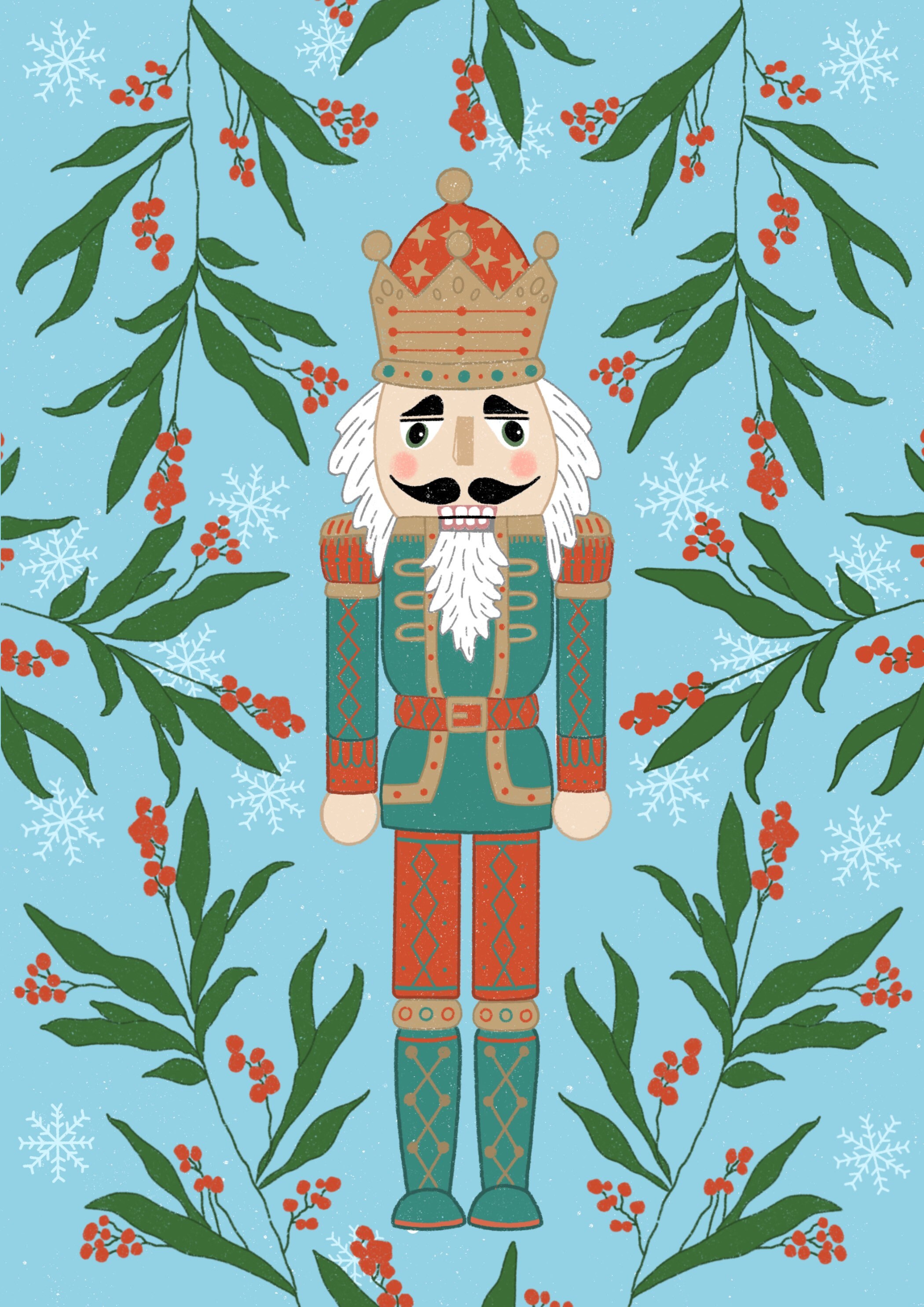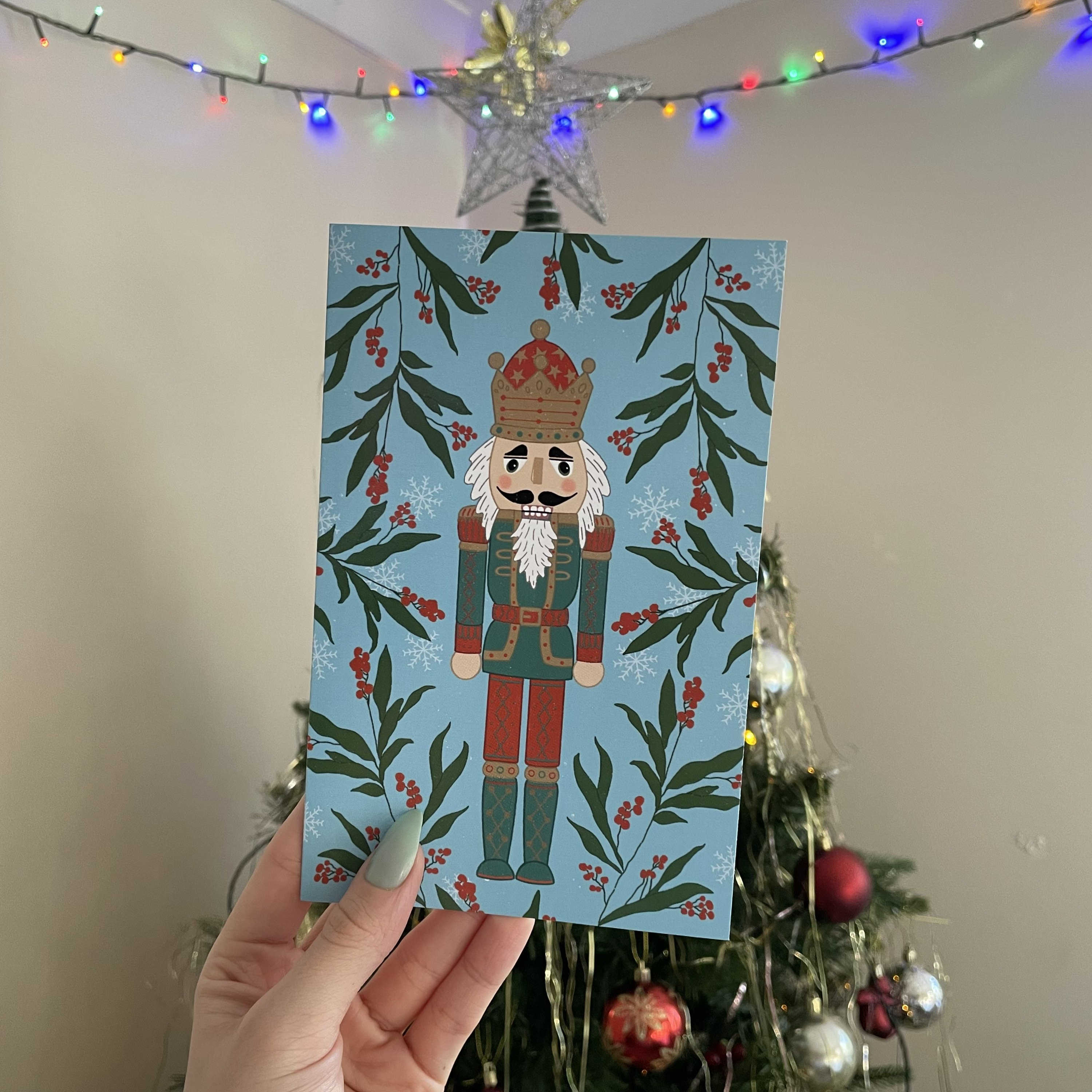 Nutcracker Christmas greetings card 18.2 x 11.7 cmEnvelope included Blank inside for you to add your own message Designed by Chloe Penn Illustration