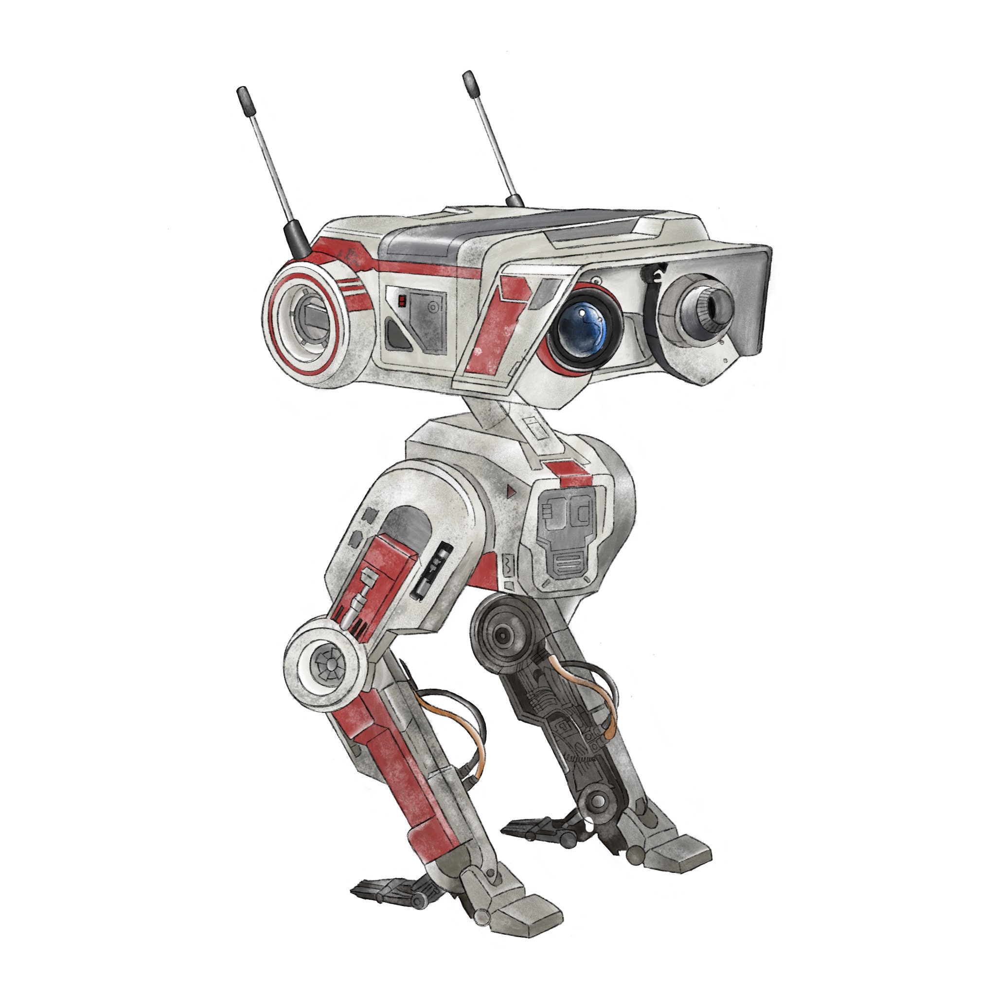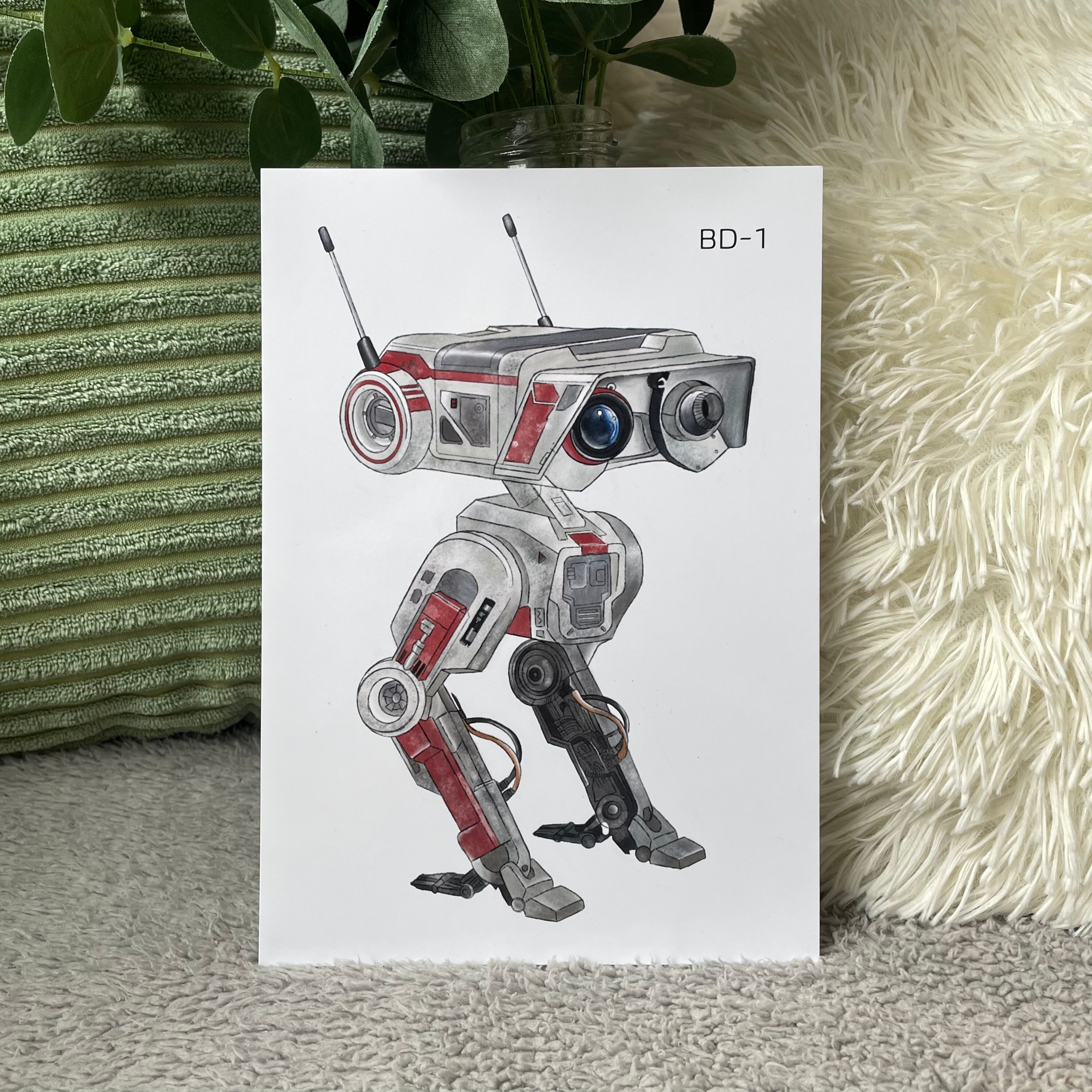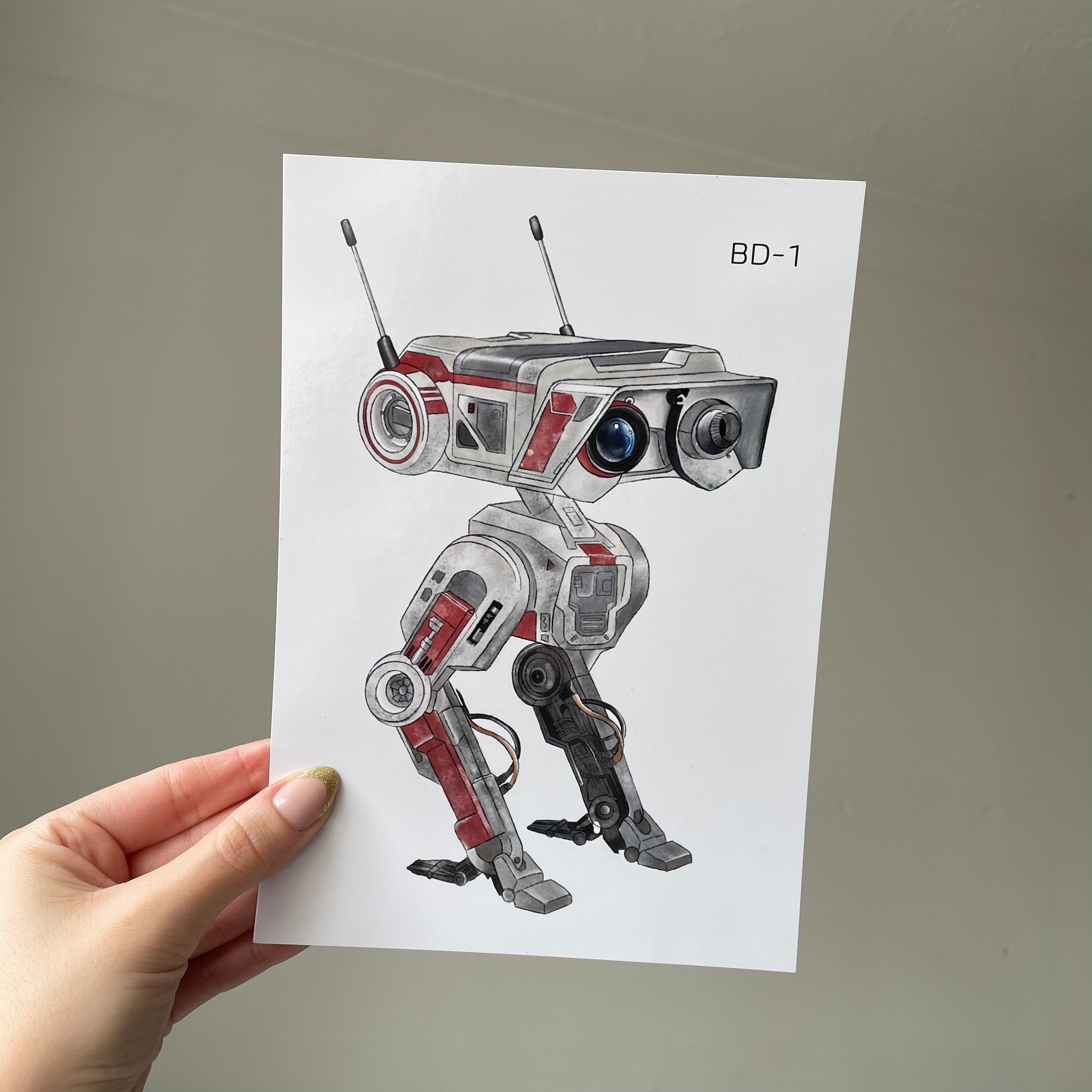 A5 art print of BD-1 droid from video game Jedi: Fallen Order and Jedi: Survivor. Illustrated by Chloe Penn Illustration. Printed on standard A5 glossy paper.