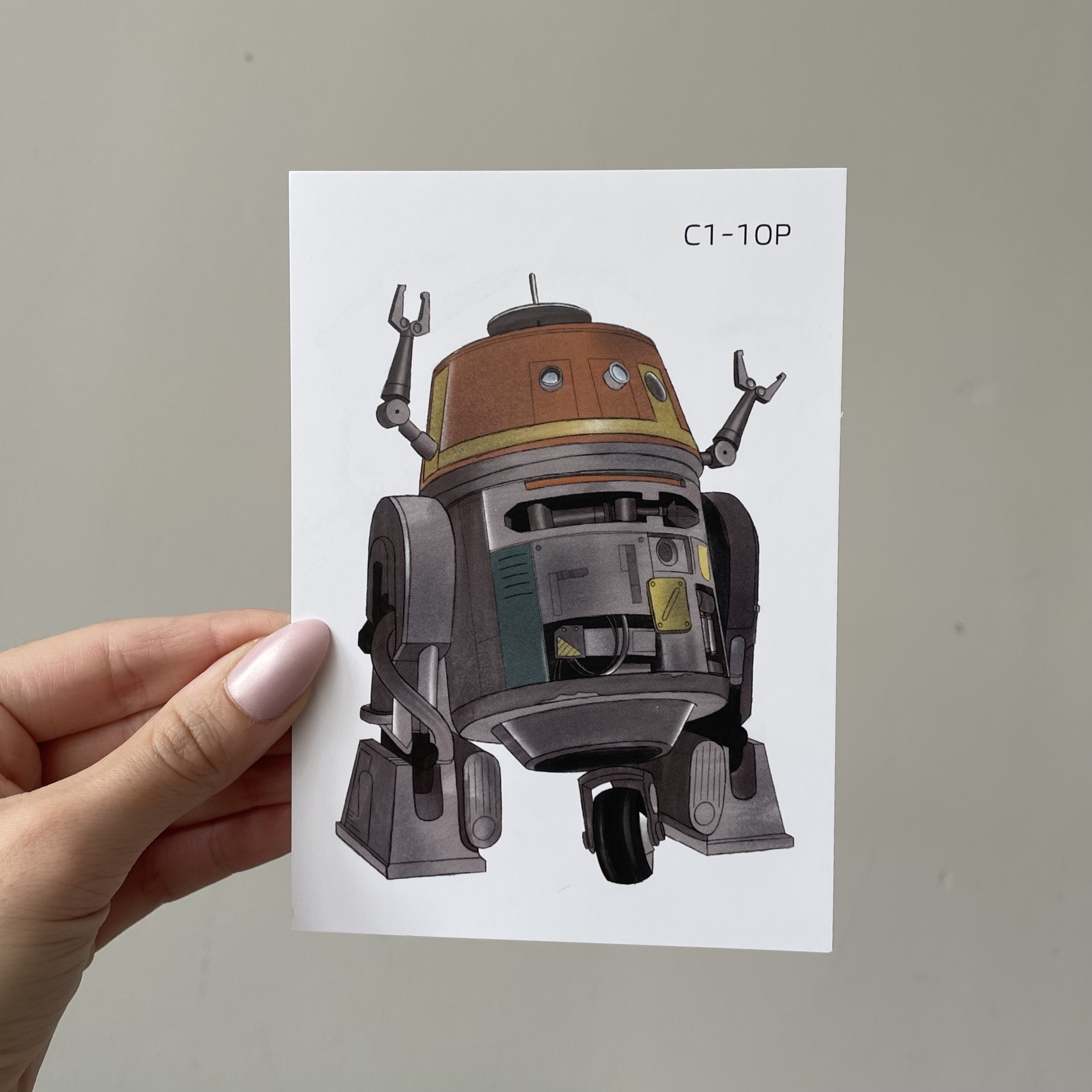 A6 art print of Chopper/C1-10p droid from Star Wars Rebels. Illustrated by Chloe Penn Illustration. Printed on standard A6 matte paper.