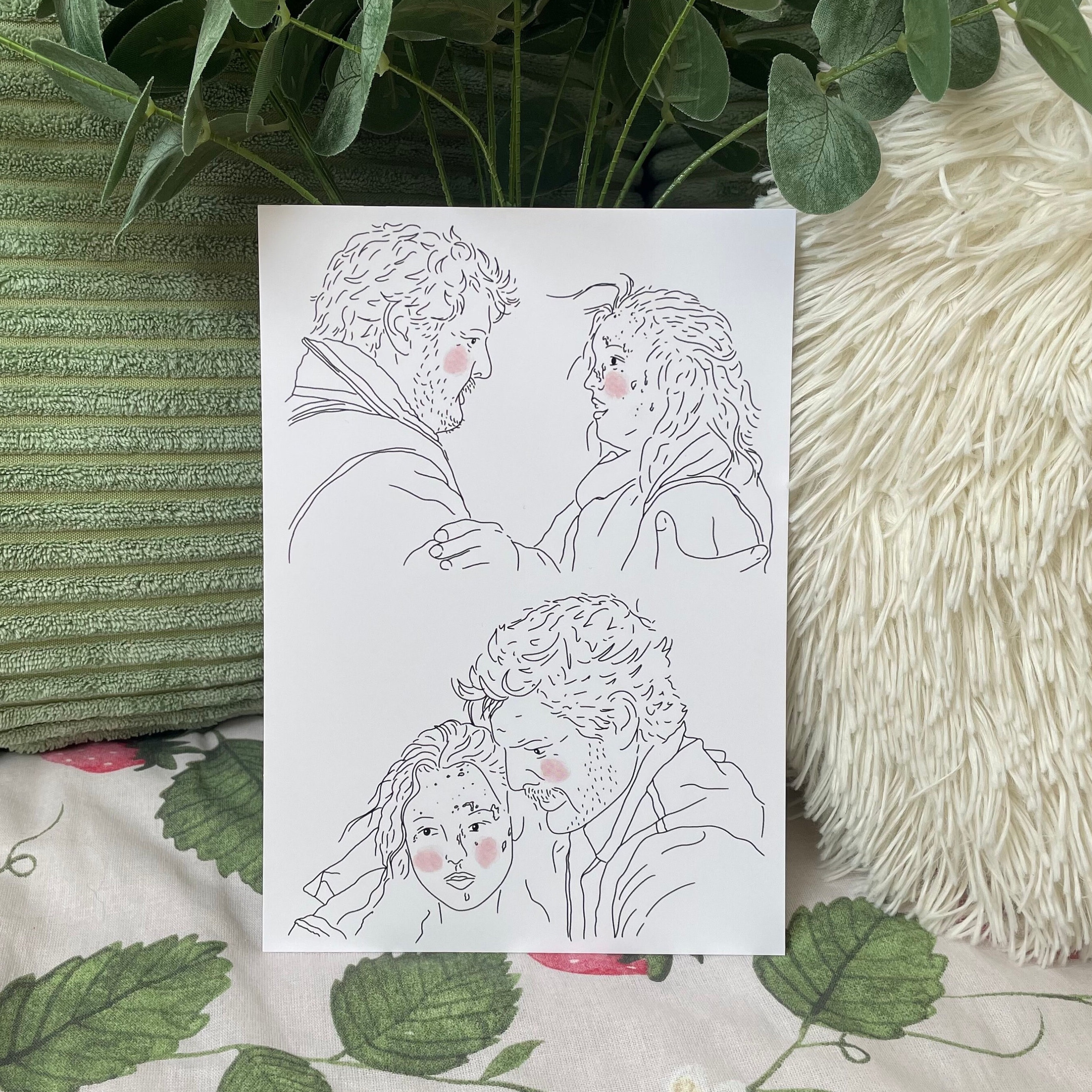 A5 art print of Joel & Ellie scene from The Last of Us TV adaptation. Illustrated by Chloe Penn Illustration. Printed on standard A5 matte paper.