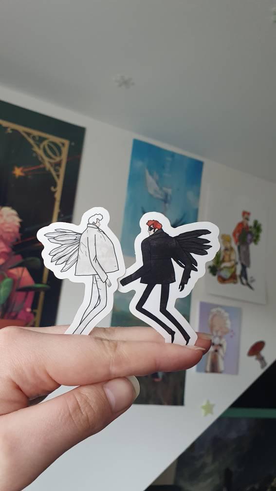 I am SO happy with this purchase! The two stickers of Aziraphale and Crowley are very cute and of good quality. At first I was disappointed when I saw she didn't ship them to my country, but when I asked her about the possibilities she was so kind and helpful. My delivery came within a few days and was packed with love. I'll defenitely buy something else from Chloe in the future.