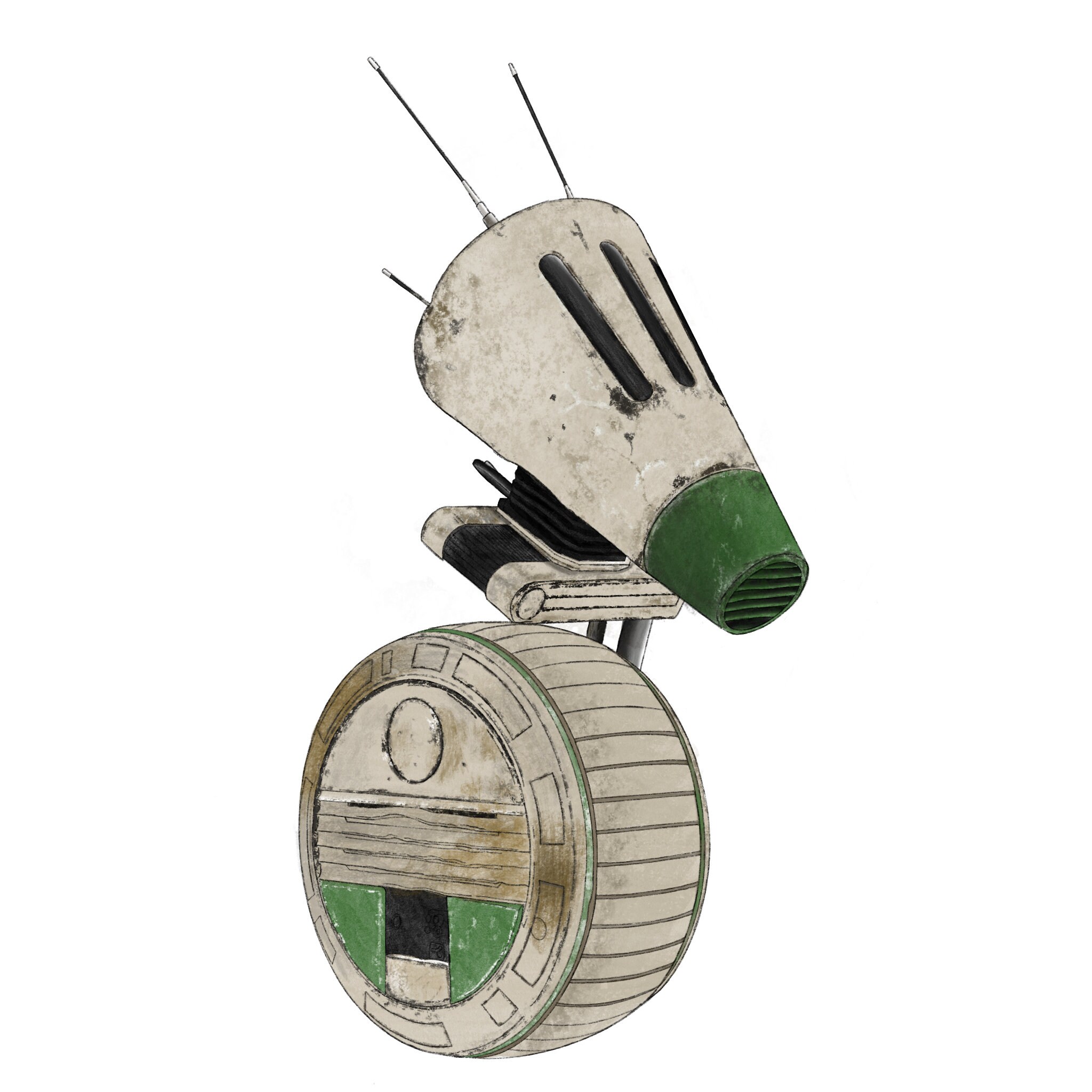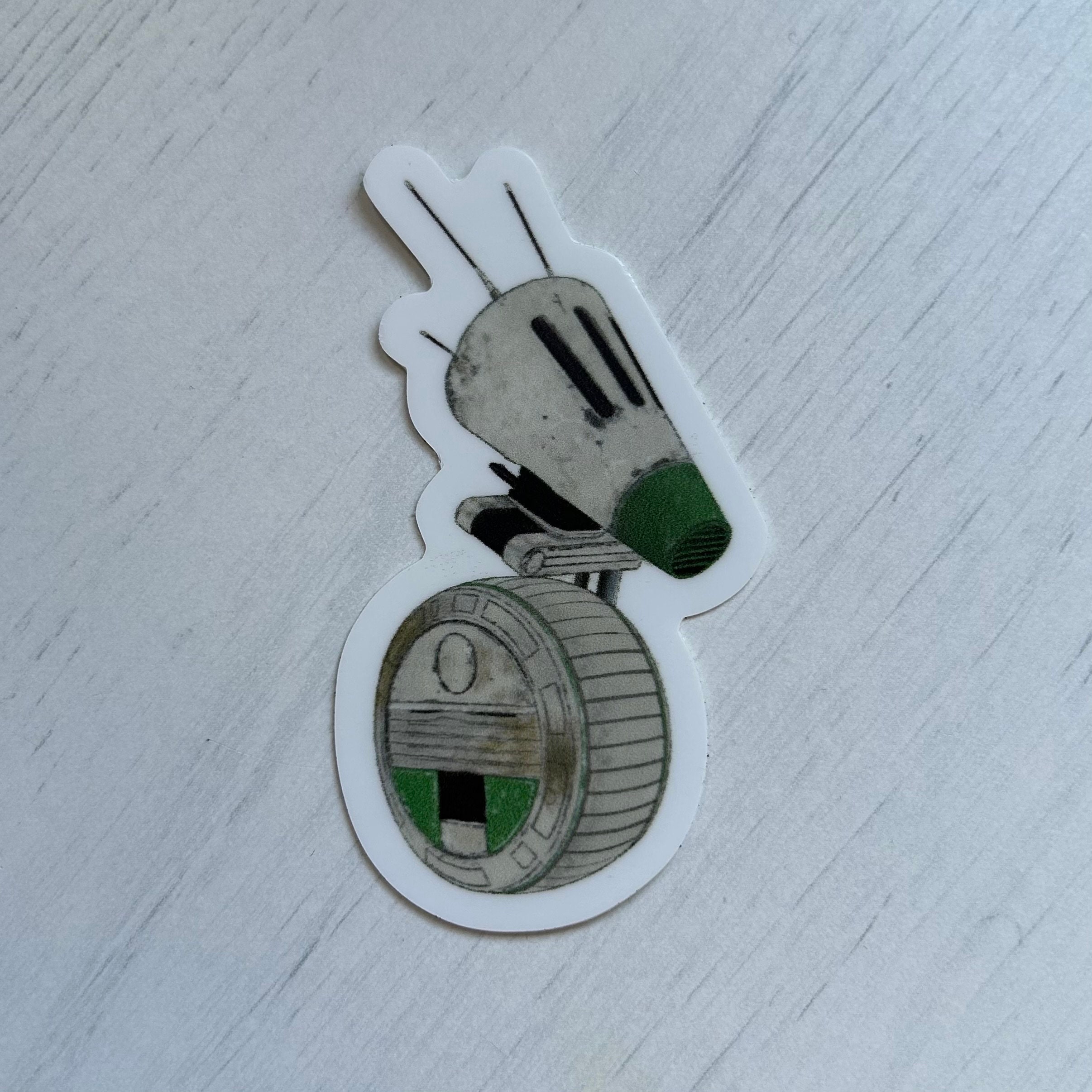 7cm die-cut sticker of D-O droid from Star Wars sequels. Illustrated by Chloe Penn Illustration.Suitable for laptops, furniture and interior surfaces.
