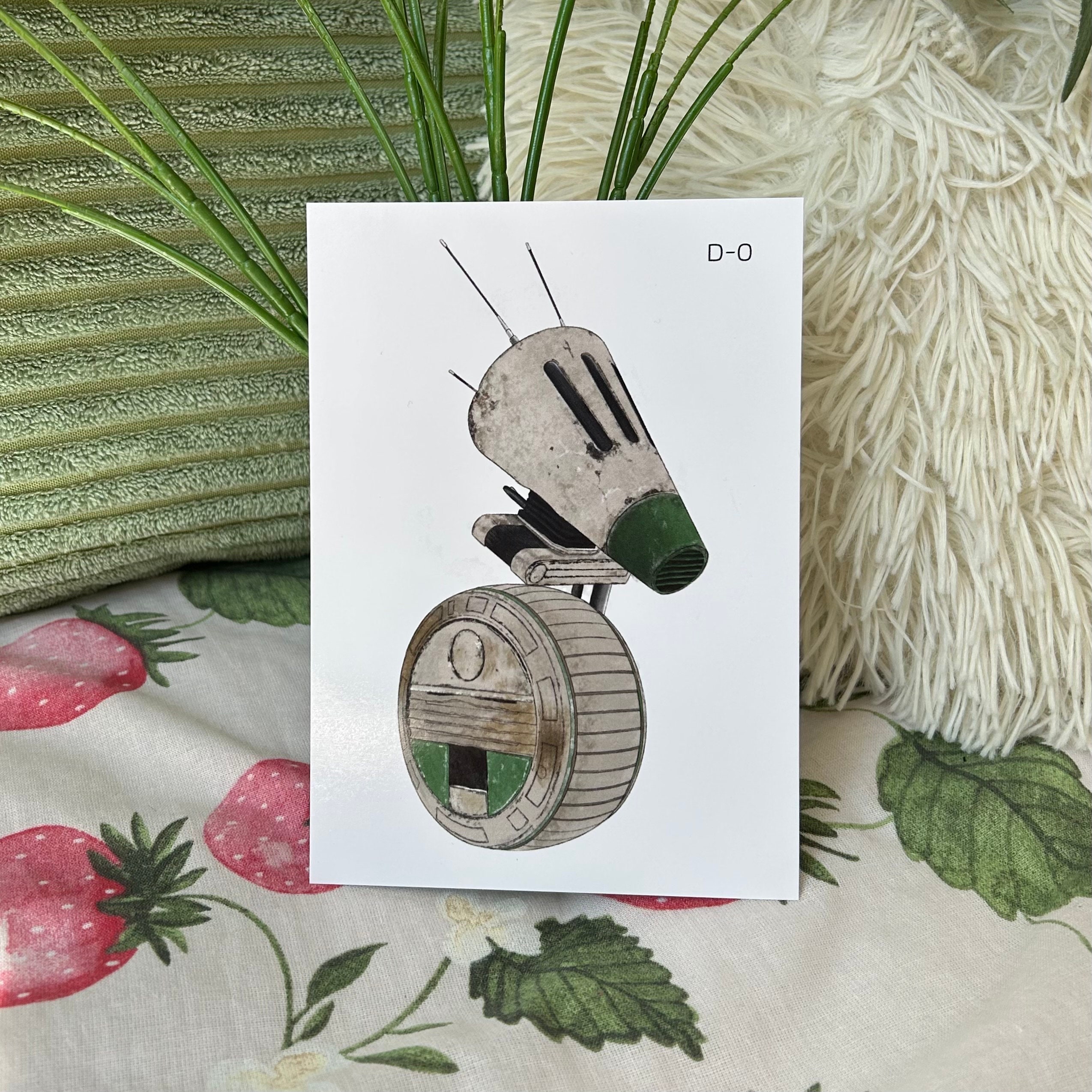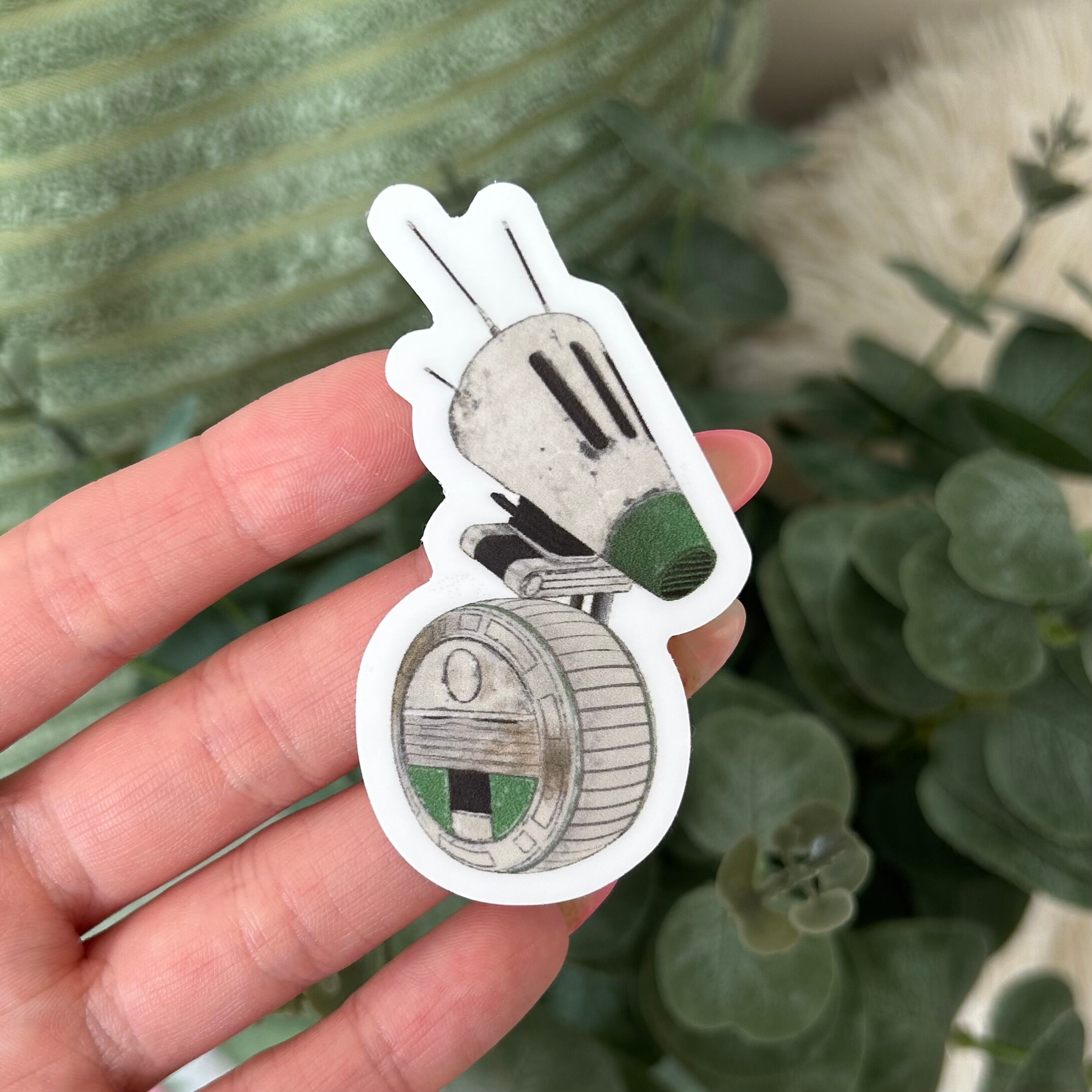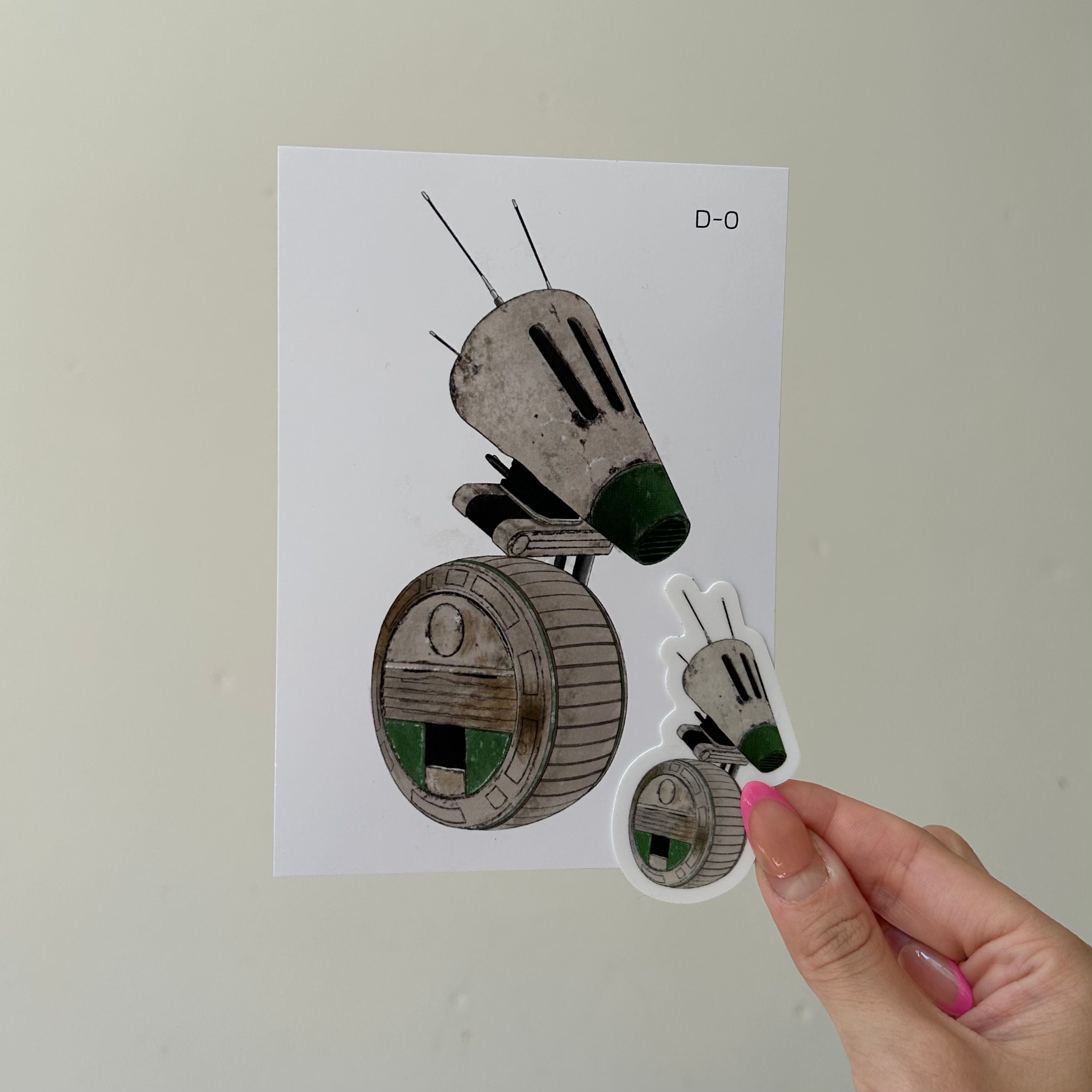 *Bundle* A6 art print and 7cm die-cut sticker of D-O droid from Star Wars sequels. Illustrated by Chloe Penn Illustration. Print printed on standard A6 glossy paper.Sticker suitable for laptops, furniture and interior surfaces.