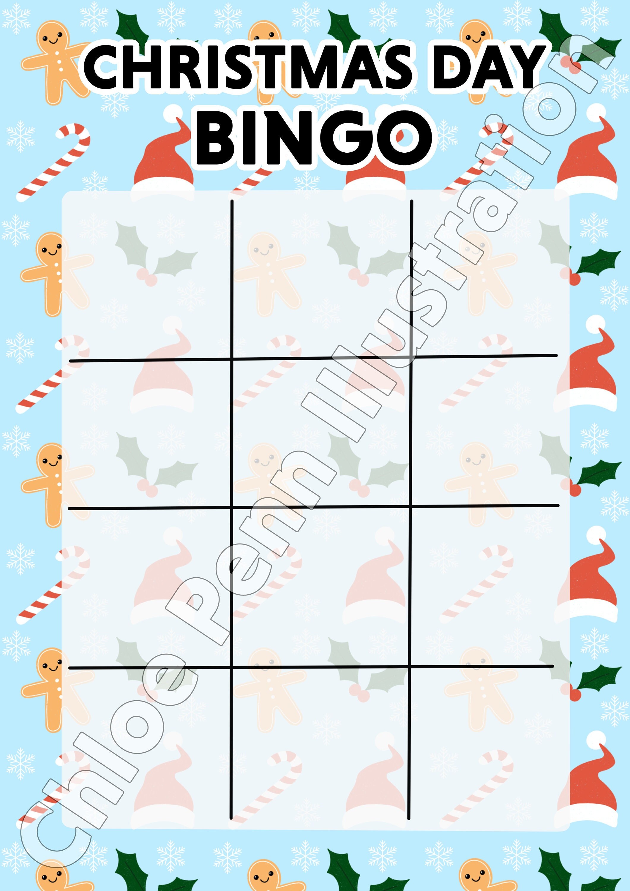 This is a digital download. The Christmas day bingo card is a printable fun family game for the big day! Print out as many copies as you need, each family member can fill out their own bingo card with predictions for Christmas day and the first one to get a full card wins!