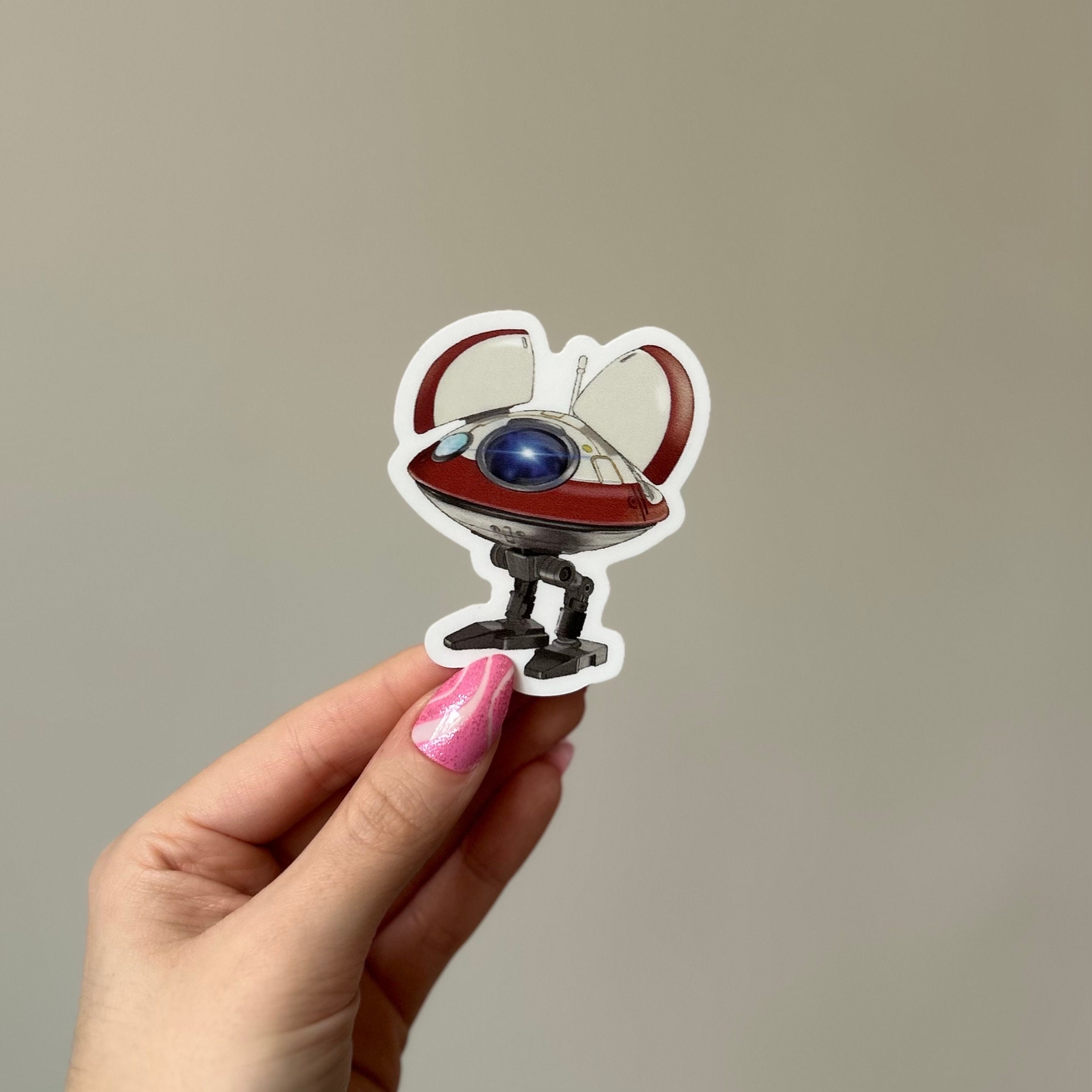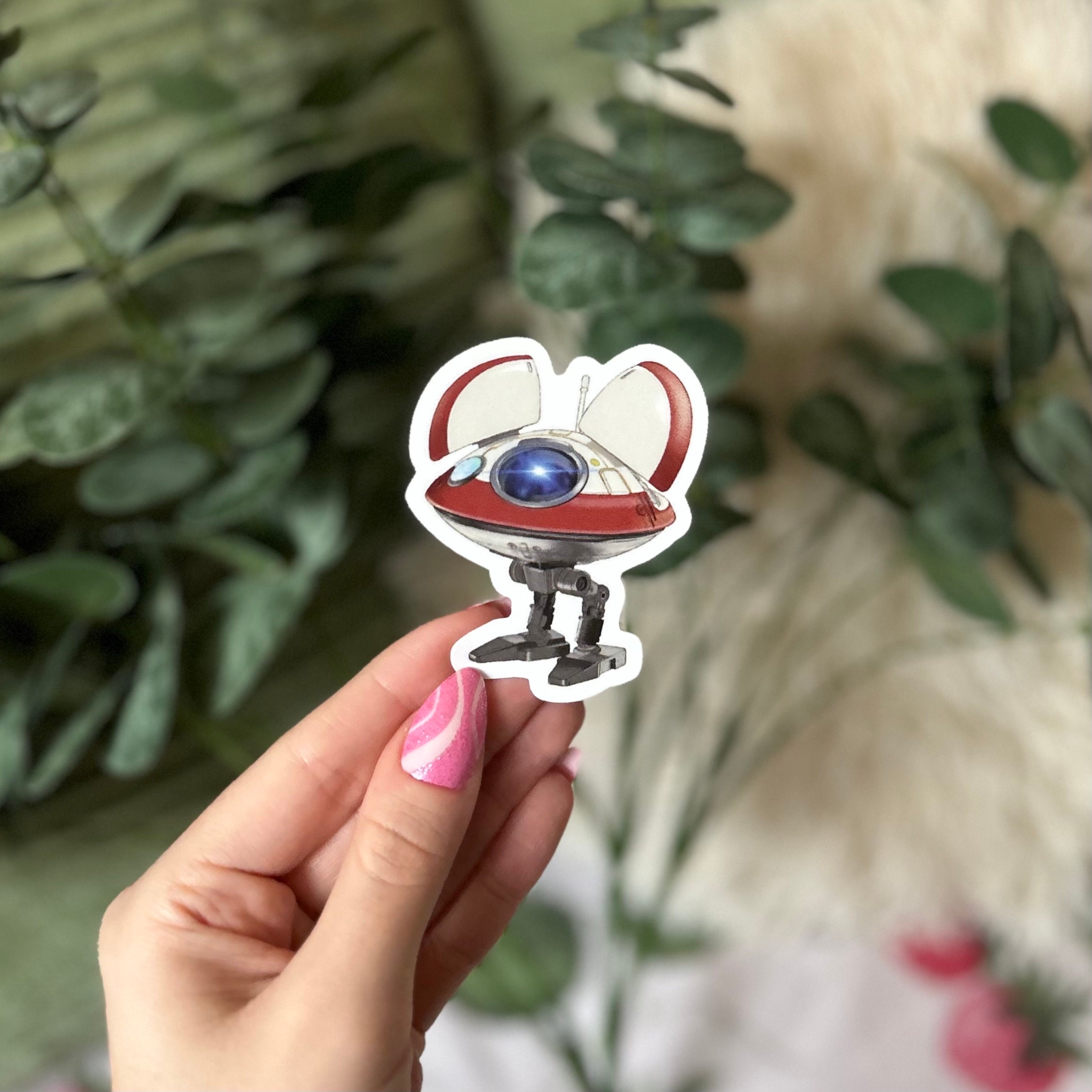 7cm die-cut sticker of L0-LA59 / Lola droid from Star Wars Obi-Wan Kenobi series. Illustrated by Chloe Penn Illustration.Suitable for laptops, furniture and interior surfaces.