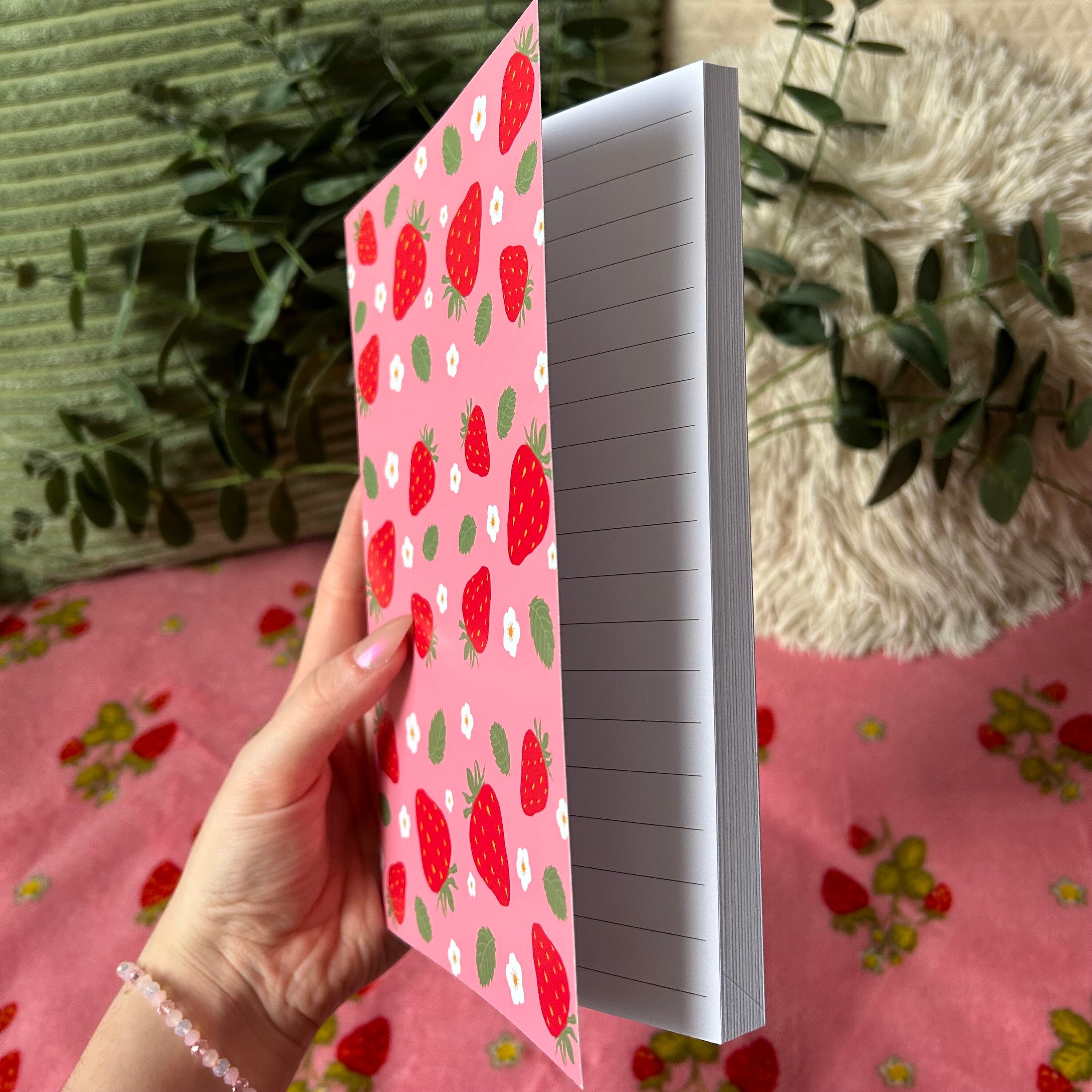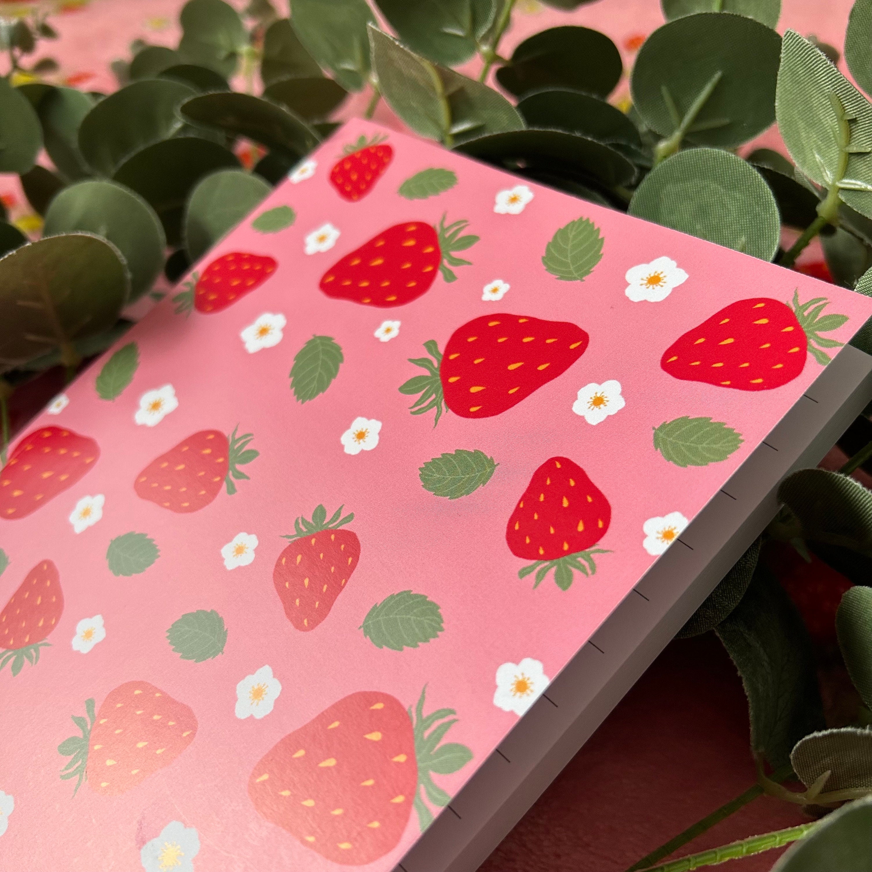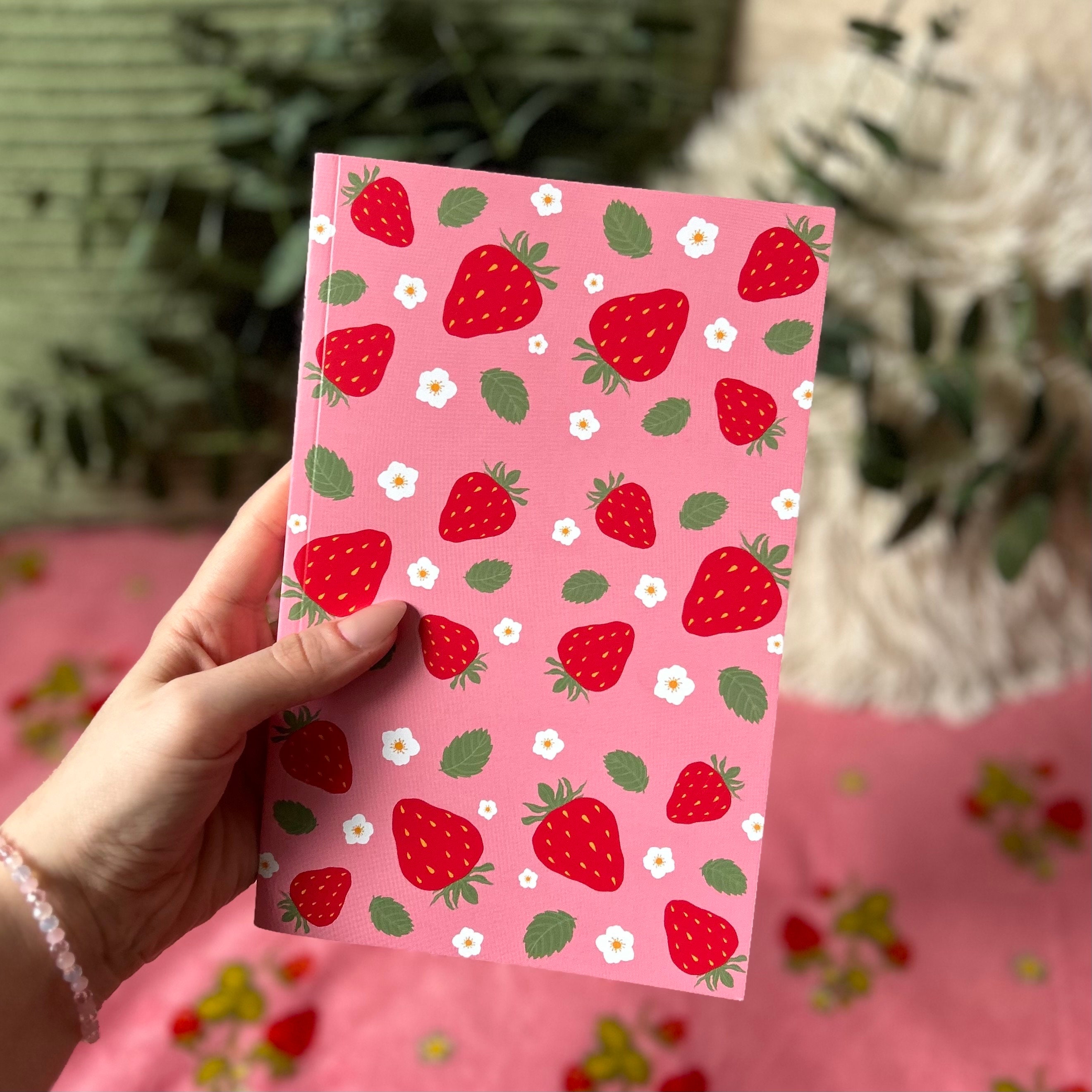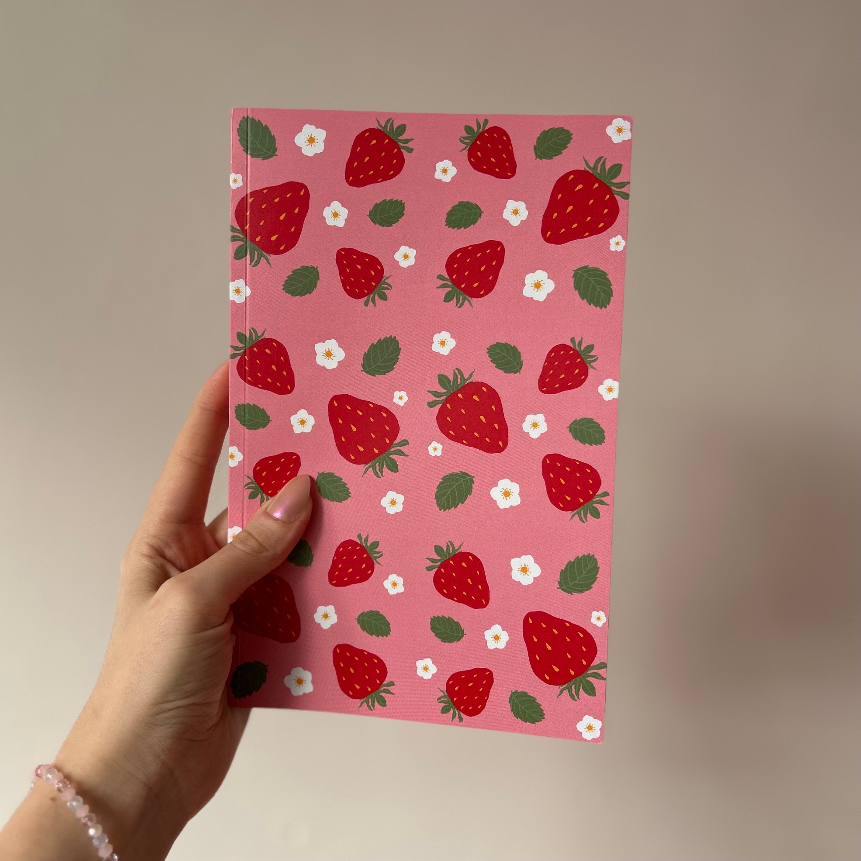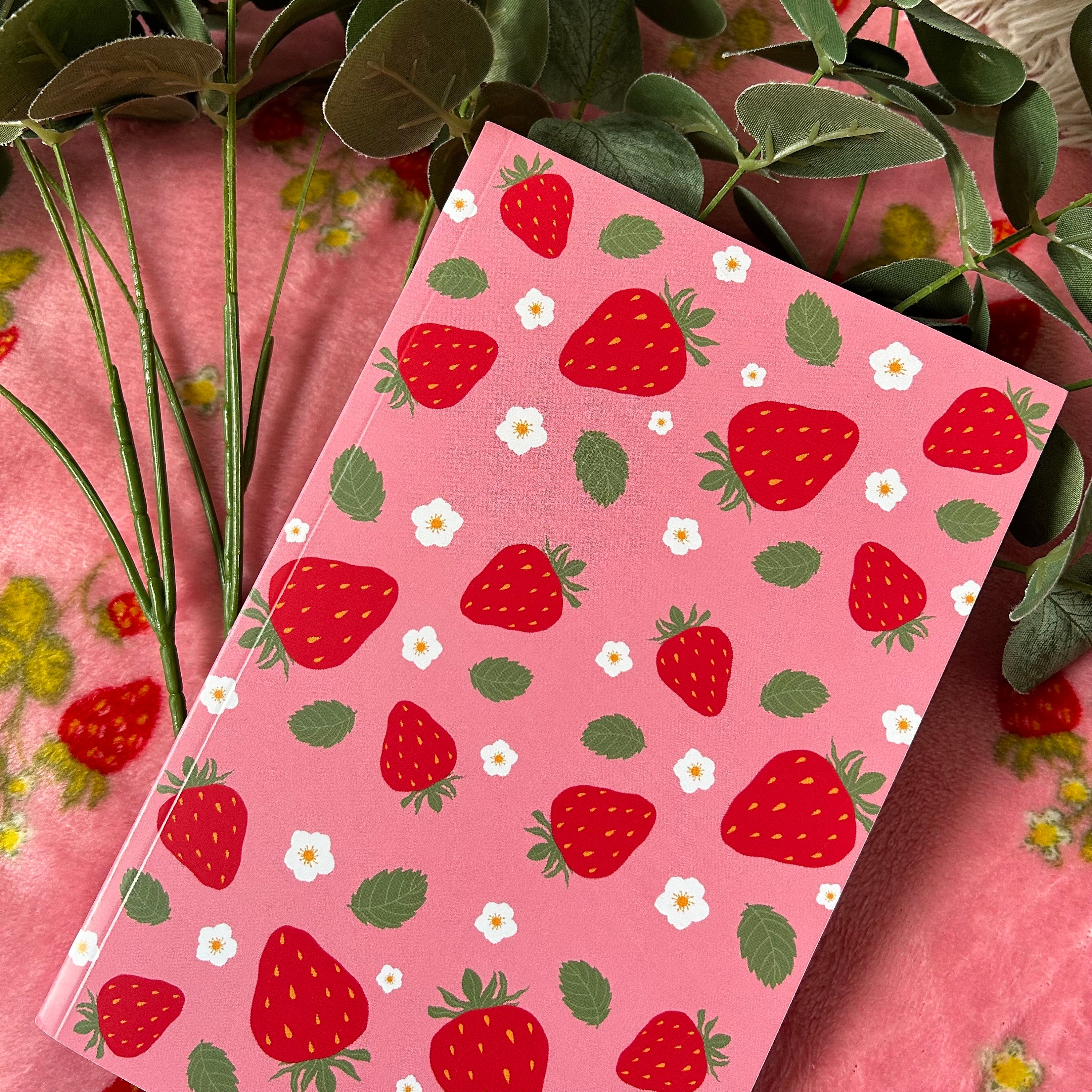 Strawberry design ruled A5 notebook perfect for note taking, studying, revision, scrapbooking and journaling.