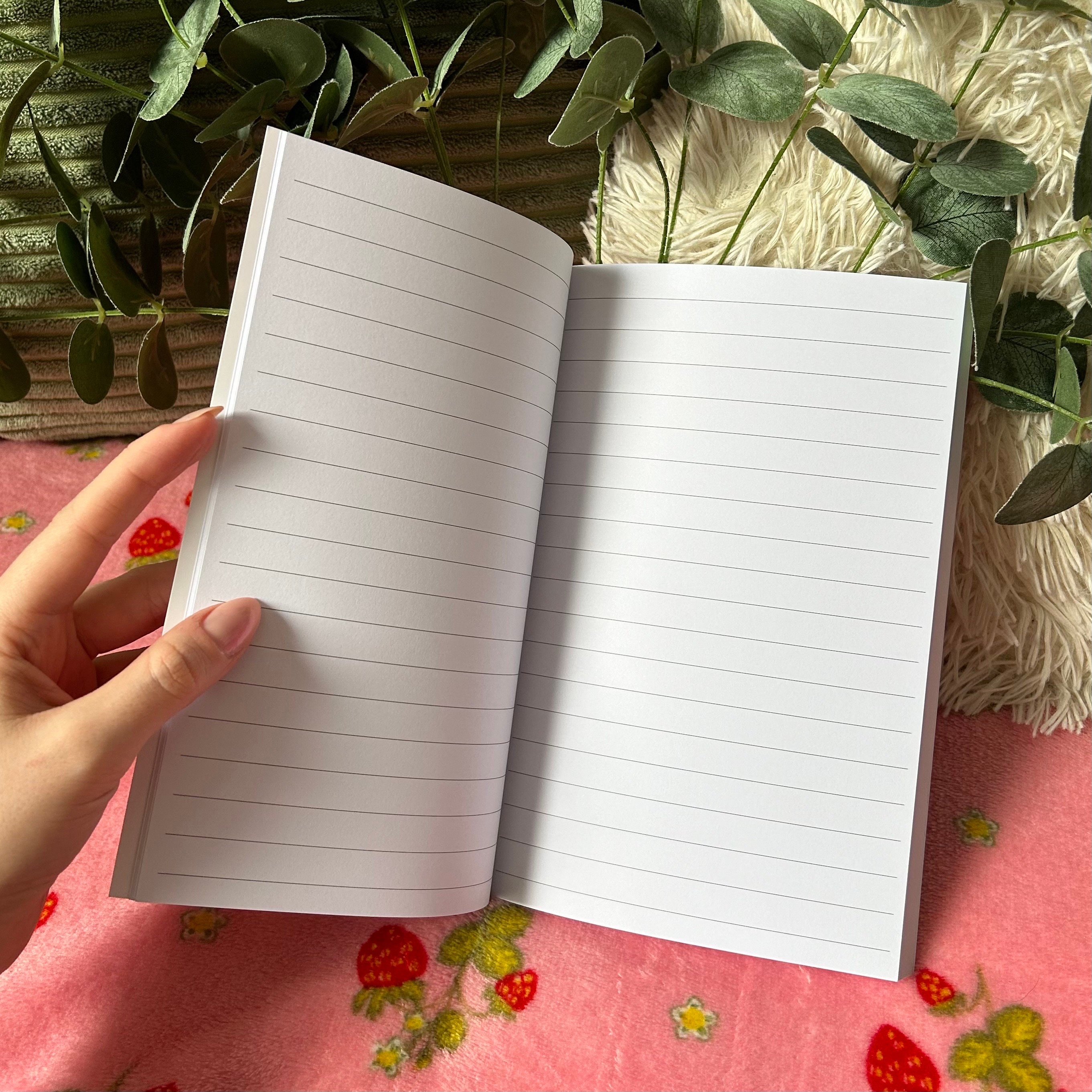 A5 (14.85 x 21cm) perfect bound book, uncoated ruled lined paper perfect for scrapbooking and writing. 80 pages inside.