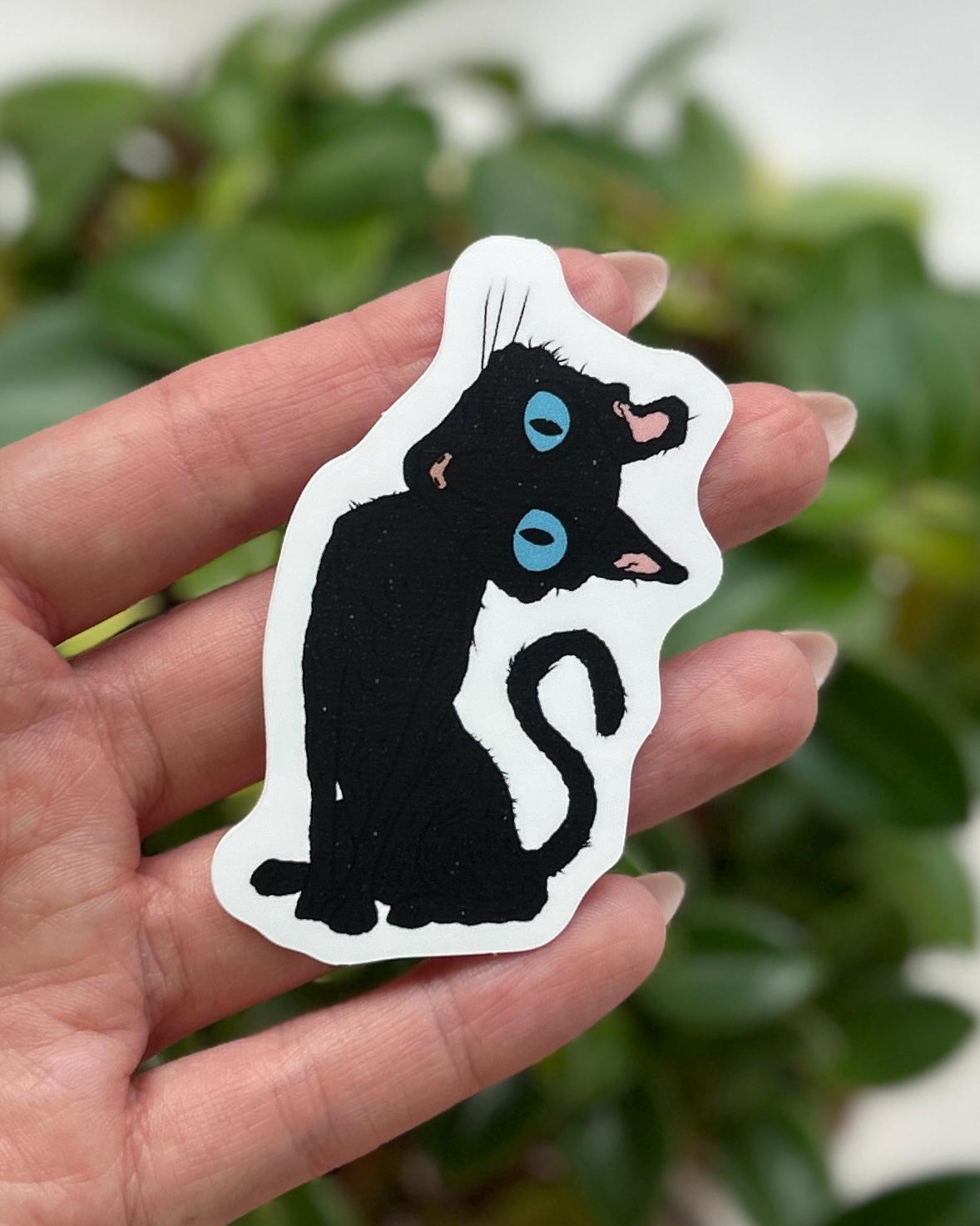 Coraline black cat 7cm die-cut sticker inspired by the 2009 LAIKA stopmotion film Coraline.Illustrated by Chloe Penn Illustration.Suitable for laptops, furniture and interior surfaces.
